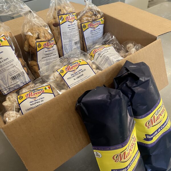 la ricetta prevede: farina di grano tenero 00, strutto, zucchero, sale e aroma naturale di vaniglia.